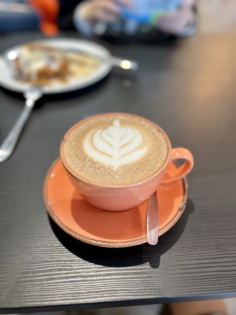 Great place! Staff are very welcoming. Great coffee and cakes highly recommend the almond croissant and the gingerbread cookie-fudge.There is ice-cream for hot days. There is room for more people but you will have to merge the tables which are set up for 2. There is more seating upstairs. There is a lunch menu. Thank you.