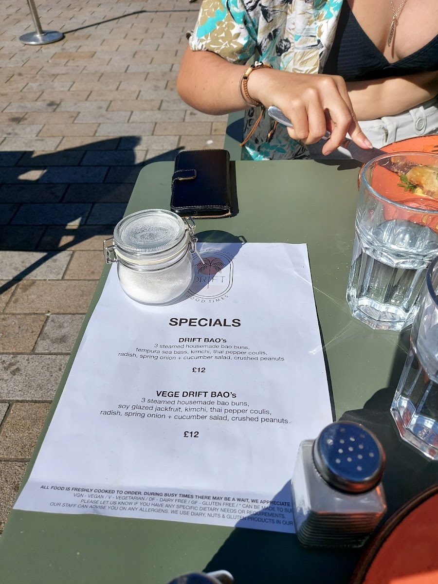 Drift Shoreham Menu